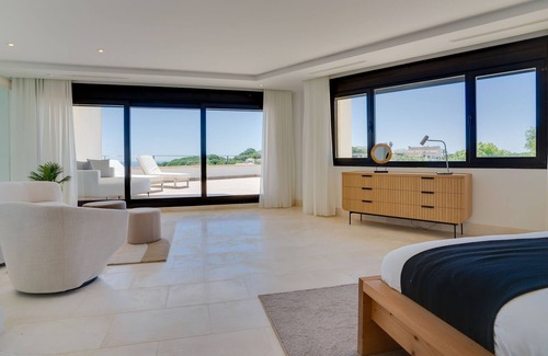 Paradise and serenity await you at the modern sea view luxury villa in the hidden treasure of the fashionable Sotogrande. This stylish place to stay is perfect for group trips.