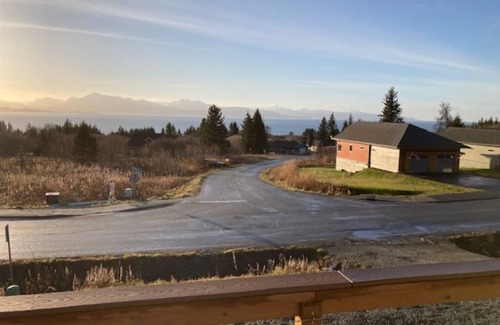 MAKE YOUR MEMORIES HERE! THIS QUIET NEIGHBORHOOD OFFERS EXCEPTIONAL VIEWS OF KACHEMAK BAY AND GREWINGK GLACIER. WATCH THE BOATS COME AND GO. USE OUR BINOCULARS AND SPOT FOR WHALES. RELAX ON THE DECK!!
