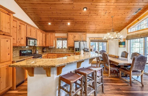 Baden's Best sits nestled among a forest of towering pine trees on a quiet street in Tahoe Donner. You can feel the warmth emanate from this cabin the moment you step inside. Start your vacation by relaxing upstairs in our living room with its vaulted knotty pine ceiling, comfy leather couch, beautiful stone fireplace hearth and gas burning stove. If you still have energy after a hard day on the mountains, have fun socializing downstairs in the fourth bedroom/family room with its Big Screen TV & DVD player, Pool Table and multiple X-Box games. However, don't have too much fun and forget to prepare a scrumptious meal for your guests in the gourmet kitchen outfitted with everything a chef needs to prepare a fabulous meal. Finally, before you retire for the evening, warm your tired feet in our hot tub that seats 7 guests and gaze at the stars through the forest of pine tress surrounding our cabin. This gorgeous home, with its lovely surroundings and classic Tahoe setting, is sure to delight everyone.