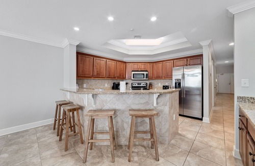 The keyless entry allows you the convenience of beginning your vacation immediately upon arrival without the hassle of check-in. Living area is equipped with a 77" OLED smart television and all bedrooms are equipped with 55" smart LCD televisions. The kitchen is fully stocked with all the necessities and many extras for you to prepare meals for your group.