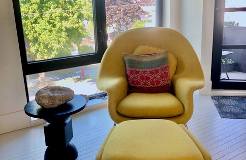 Fully furnished and Well equipped with eclectic European furnishings, art, boutique-hotel style cotton linens and feather duvet. The spacious & light-filled, 1200 sq ft, newly renovated duplex faces west and is 2 blocks from vibrant Commercial Drive including trendy shopping, cafes, restaurants, small grocery stores, butcher, fishmonger etc.