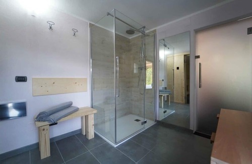 From the living room there is access to a large terrace with electric and air-conditioned pergotenda that allows you to eat outside, enjoying a lovely view. Available for guests a large wood-fired barbecue ideal for preparing wonderful dinners. On request, the living room can host a couple on comfortable double sofa bed.
