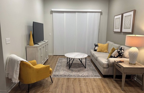 Luxury 1-bedroom apartment in prime Leawood location is located in Leawood. Luxury 1-bedroom apartment in prime Leawood location provides accommodation, featuring Air Conditioner, TV, Balcony/Terrace, among other amenities. This Apartment features Air Conditioner, TV, Balcony/Terrace, to make your stay a comfortable one.