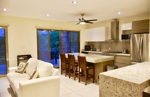 If you're looking for a place to get away from it all, look no further than this beautiful 2 bedroom apartment, it has everything you could need: 2 bedroom 2 1/2 bathroom condo with large balconies, pool, kitchen, TV, free wifi, and BBQ grill. located in small development in the quite residential area just north of Playa Del Carmen with parking, secure access, 24 hours security just 10 minutes walk to the private beach and 15 minute driving from the famous fifth avenue. —you can enjoy some peace and quite in your own home!