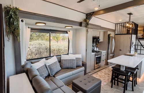 This is no ordinary RV. From the moment you walk in, you'll feel the attention to detail—from soft-close cabinetry and motorized blinds to the hidden flat-screen TV and ambient lighting. Every inch is curated for comfort and ease.