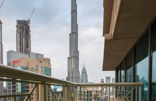 This luxuriously designed apartment has a direct full view from the balcony on the tallest building in the world Burj Khalifa and the famous dancing fountain.