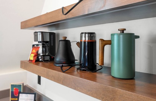 GetAway Door Co. A-Frame is perfect for a family (or 2) with a bunk room for all of the kids. It also houses two couples very comfortably, with a primary king bedroom (on suite bath) upstairs and a king bedroom and a bunk room with a shared full bathroom/laundry room on the first floor. Get restful sleep on luxury bedding and enjoy plush towels and provided robes. The open concept living room and kitchen open up through large sliding large doors to connect to the exterior deck.