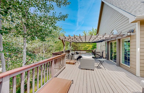 After a day of adventure, unwind on the spacious deck while soaking in the serene mountain views. An outdoor dining area provides the perfect setting for al fresco meals, complete with a gas grill for your barbecuing needs. Inside, the home is equipped with modern amenities, including a fully stocked kitchen, central AC, and a cozy gas fireplace, making it an ideal retreat year-round.