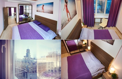 Located in the very center of the city- on the famous Khreshatyk street, there are many bars, restaurants, shops and clubs in the area. The apartment itself is newly renovated, beautiful and cozy, perfect for a comfortable stay with a pleasuring Jacuzzi and Sauna! There are Smart TV's (LG TV's) in every room, including in front of the Jacuzzi! Super-comfortable king-sized bed in the living room, with a large and spacious closet, and an amazing view out the window. The living room has a fridge and a kitchen with all the appliances, cutlery and glassware you'll need. The couch is large and comfy, right in front of a Smart TV for a pleasant evening. And the view outside the balcony is fantastic!