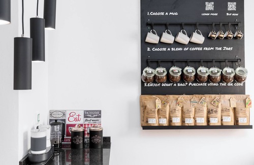 Your eyes come to rest on the pièce de résistance that is our international "honesy" (no tea just coffee) coffee bar that features 8 different artisanal blends of coffee from all around the globe provided by the first micro-roastery here in the Canary Islands all the way from the Island of Tenerife. We offer this as standard, completely complimentary to our guests! (P.S. if you like a specific blend you can even take a bag or two home with you as we offer a remote contactless payment service).