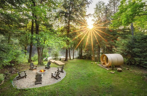 Luxury Cabin, Sauna, River Cold Plunge,IGLOOS,EV,Wifi,Instapics! In Muskoka,ON is located in Bracebridge. Luxury Cabin, Sauna, River Cold Plunge,IGLOOS,EV,Wifi,Instapics! In Muskoka,ON provides accommodation, featuring TV, Sports/Activities, Spa, among other amenities. This Cottage features TV, Sports/Activities, Spa, to make your stay a comfortable one.