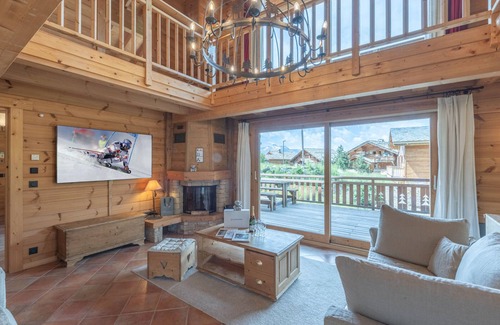 It offers 6 bedrooms and 4 bathrooms spread over two floors, a kitchen opening onto the dining room and living room with fireplace. There's also a games room, a hammam, an office and a large ski room with direct access to the ski slopes.