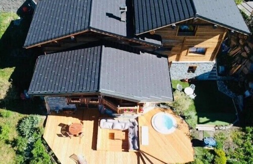 Our new chalet at 1440 m above sea level offers you a 180 ° view of the peaks of the arches in Val d´Isere. Facing south, very bright, it has a terrace of over 100 m2 with lounge, furniture and 4-person jacuzzi with panoramic views, so you can enjoy the slightest ray of sunshine, from morning to evening.