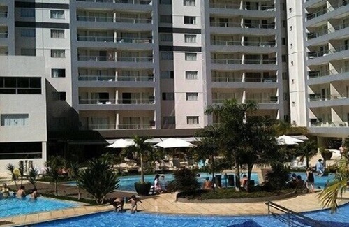 This is a Flat style apartment in a modern development that acts as a 5 star style Hotel. The Flat is fully furnished with 2 LCD TVs, internet access, refrigerator, stove, microwave and air conditioning. It is in a bold building with a leisure area with 7 pools, 3 heated, with 1 waterslide, 2 heated hot tubs, and an excellent gym, squash court, soccer field and games room. The flat service has all internal services, including reception, security, room service, snack bar and restaurant. It is in a great location, very close to the famous and international Hot Park.