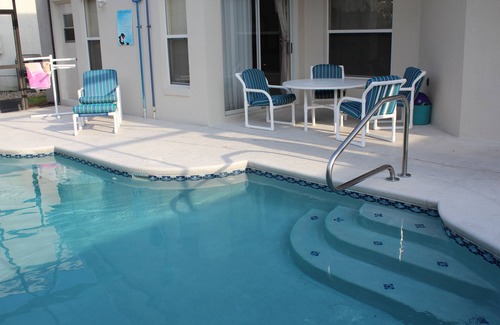 The villa provides every amentity for your Florida holiday, including free WiFi and U.S. phonecalls. It has four fully furnished bedrooms: a king-size master bedroom with en suite bathroom, walk in closet, TV and DVD; a queen size bedroom with en suite, closet and TV/DVD player; two twin bedrooms with TV/DVD players, closets (and a cot) and a third bathroom. The family area has internet TV (Sling TV and ROKU), DVDs, board games and books. There is a poolside lanai for outdoor dining and a formal family dining area inside. An extensively equipped kitchen enables a party of 8 to easily self-cater. The kitchen is next to a breakfast nook. The air conditioned games room (table tennis, Foosball and air hockey tables) also contains a laundry with washer, dryer and ironing facilities.