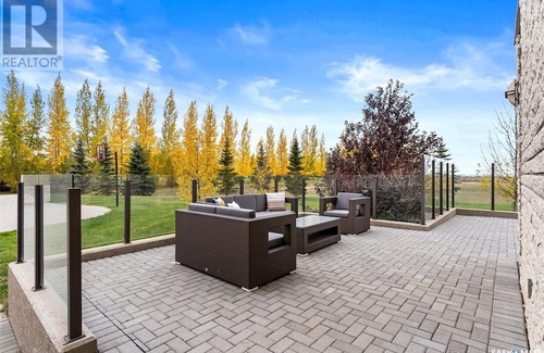 Relax on a secure, gated 5 acre estate home located in "Stone Pointe Estates", a community just 10 minutes from Regina and a short drive to White City. Property is over 8300 square feet with 4 bedrooms with ensuite full bathrooms, king/queen sized beds. Enjoy a games room/office, a gym, a movie room, two other offices, a chefs kitchen overlooking the prairies, two ovens, a wrap around deck, basketball net, ping pong table, a fire pit, and all the space for your family. 7 televisions in multiple rooms. Fully stocked and furnished, just come and relax. Please email me to pre-approve all renters. Will do a discount on a longer stay.