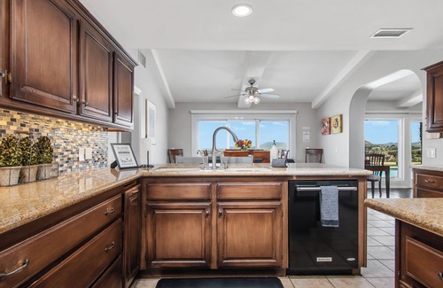 Once you open front door you instantly feel calm and peaceful as you are drawn to walk straight back and check out the View! The home has stylish furnishings that where all purchased with intentions to make your stay the best and most comfortable. The home has distressed hardwood flooring throughout entry, formal living and dining rooms, and the expansive great room with Wet Bar. Great room has all windows on the back wall to enjoy the view. It has a large chef's kitchen with Thermodar appliances and SubZero Fridge.