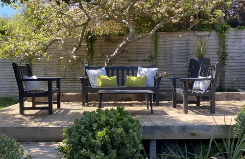 The private courtyard is a perfect for a morning coffee or an evening cocktail or two. For hosting a larger group, the extensive decked dining area, in the adjacent private garden, is ideal for a leisurely lunch or tranquil evening for all the family. The garden stretches towards to the sea. Ideal for children's games and the young at heart.