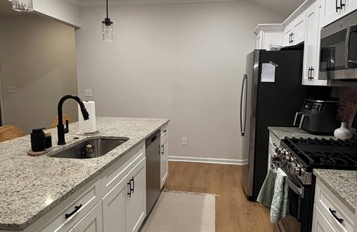 Nestled in a peaceful neighborhood just minutes away from Augusta National, this beautiful 3-bedroom, 2-bathroom home is the perfect retreat for your trip to The Masters. Whether you're attending the tournament or simply exploring the area, our home offers both comfort and convenience in an ideal location. Step inside to discover a spacious and inviting living area, perfect for unwinding after a busy day. The open-concept design seamlessly connects the living room, dining area, and fully equipped kitchen, making it easy to gather with family or friends. The kitchen is stocked with all the appliances and cookware you need to prepare meals, whether you're enjoying a casual breakfast or a gourmet dinner. The gorgeous master suite is a true sanctuary, featuring a luxurious bed, ample storage, and an en-suite bathroom with a walk-in shower and separate soaking tub. Two additional well-appointed bedrooms provide plenty of space for guests to rest and recharge. Outside, the private backyard is an ideal space for relaxation and outdoor dining. Fire up the grill for a cookout, or simply enjoy the fresh air in a serene setting. The home is located in a quiet, friendly neighborhood with access to a community pool, perfect for a relaxing swim. With nearby golf courses and all the excitement of The Masters just a short drive away, our home offers the best of both worlds—close enough to the action yet far enough to enjoy peace and tranquility. Whether you’re in town for the tournament or a weekend getaway, our home provides the perfect blend of comfort, convenience, and relaxation.