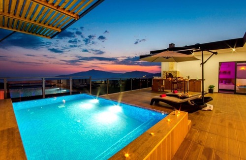 Luxury Honeymoon Villa with Heated Indoor Pool and Secluded Infinity Pool is located in Kalkan. Luxury Honeymoon Villa with Heated Indoor Pool and Secluded Infinity Pool provides accommodation, featuring Air Conditioner, Child Friendly, Hot Tub, among other amenities. This House features Air Conditioner, Child Friendly, Hot Tub, to make your stay a comfortable one.