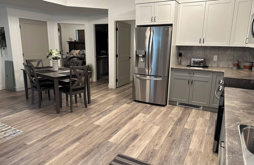 Stay comfortably in this brand new 2 bedroom secondary suite in desirable Lakeview Heights. We are on a quiet close adjacent to West Kelowna wine trail. Just 7 mins to downtown Kelowna, walking distance to wineries, restaurants, craft brewery, grocery and liquor store. Minutes from lake and beaches. The bedrooms feature 2 king beds, ensuring a good night's sleep for all guests. Enjoy the convenience of a fully equipped modern kitchen with stainless appliances. New furnishings throughout including washer and dryer. Private outdoor enclosed patio. Lots of parking with room for a boat. Feel at home in this gorgeous space, perfect for a nice getaway. Feel free to reach out to us during your stay - we're happy to suggest local spots to check out.