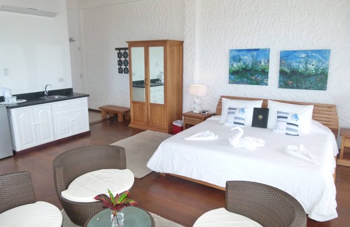 Located on the Island of Santa Cruz in the town of Puerto Ayora is this beautiful Luxury Suite on the Bay. This is one of our favorite Suites in all of Galapagos. We at Keystravel Galapagos have personally stayed in this suite and have photographed every inch of this suite from every angle. It sleeps up to 3 people (extra person charges apply), and we can accommodate larger parties here by the addition of the connecting Suite. We have years of happy clients who have stayed here, and you can count on being one of those happy clients yourself!