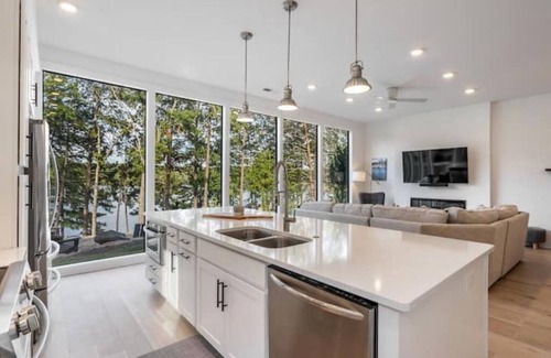 Lakefront luxury perfect for a weekend getaway or a winter work at home location. Natural beauty abounds in the gorgeous Lake Arrowhead community, where lake and mountain living coexist. You have access to an 18 hole golf course, 16+ miles of hiking trails, 2 pools, tennis, and one of Georgia’s most pristine lakes. Enjoy lake activities at the adjacent marina. Relax by the firepit, enjoy lake views through floor-to-ceiling windows, or explore the nearby N. Georgia mountains.