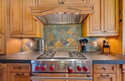 KITCHEN - The kitchen in the main house is fully stocked with everything Grandma needs to make Thanksgiving dinner and then some, from the Wolf stove to the custom refrigerator and Coffee Bar.