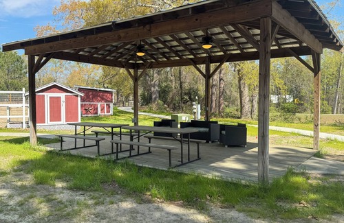 Nestled in a serene country setting-just 5 miles from the nation's safest beach, White Lake, only 50 miles from Wilmington, and 85 miles to Raleigh. Refined resort with a winery, distillery, museum, restaurant, tasting room, spa, ample event space, and the Tipsy Toad Gallery. Boasting views of the winery's lush landscape, our twenty non-smoking luxury cottages are beautifully appointed with custom mattresses, lakeside views, and designer toiletries.