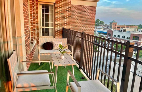 Inviting 2-bed, 2-bath luxury private executive loft apartment in lively downtown Dearborn. Also Top floor with scenic patio view! Close to top restaurants, attractions (Henry Ford Museum, Greenfield Village, African-American history museum). Well-equipped with memory foam beds, kitchen, smart TV, Wi-Fi, indoor gym. Includes towels, toiletries, washer/dryer. Note: 24/7 security out side premises. Smart appliances.