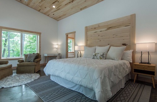 Your vacation awaits in the heart of Crosslake, MN! Come stay on this modern, million-dollar, brand new property on Ox Lake with beautiful sunrise views of the pristine and private lake. Located on a private driveway, away from busy roads to provide peace-of-mind while your children play. Featuring vaulted ceilings throughout and expansive windows to let in natural light and beautiful views of the lake. A striking, modern, 20-ft steel surround 72-in electric fireplace is stunning to look at or cozy to curl up next to with a good book on a rainy day. Stay comfortable no matter the weather with zoned in-floor heat throughout and Central Air. 2.5 baths featuring two beautifully tiled rainfall showers give you a spa-like experience every day of your vacation. Three bedrooms offer the following sleeping accommodations: Master Bedroom-King, Guest Bedroom-King, Guest Bedroom- Two Queens. Two rollout beds are also available. Full kitchen with a coffee bar to start your day right, with granite countertops, high-end finishes and fully equipped to cook your own cuisine. Have your appetizers or drinks outside on the 20x40 outdoor patio, which includes a grill for your use.