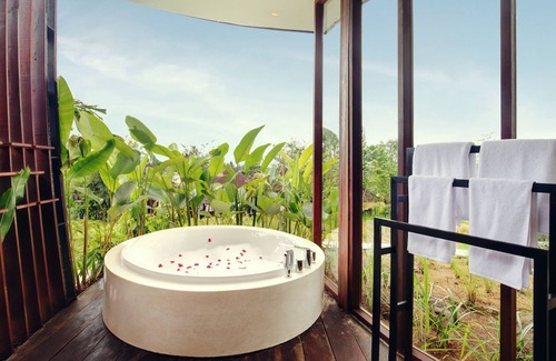 Unveil the epitome of serenity and luxury in our exquisite 1-bedroom pool villa in Ubud, Bali. This intimate haven offers an enchanting panoramic view of the lush surroundings, a sparkling private pool, and a luxurious bathtub, all designed to make your Bali getaway an unforgettable experience.