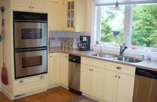 The gourmet kitchen was built for a CHEF - features include a nine-foot island with a prep-sink, double oven, a five-burner gas cook top, and a pasta faucet. The dining room has 2 large circular tables. Each table has a lazy Susan and can seat 8 to 10, plus there is counter seating for four. Also, there is a small wet bar with an ice machine close by! The spacious deck has two picnic tables for enjoying lunch outdoors in wet bathing suits. The picnic tables can seat 12 to 16 kids/adults, and are less than 10 feet from the kitchen.
