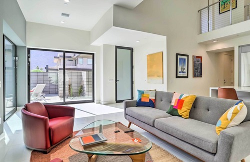 Ideal for friend groups seeking comfort and convenience, this vibrant vacation rental home offers upscale living spaces and proximity to attractions. Start your morning sipping coffee on the balcony with stunning mountain views as your backdrop, then stroll downtown to browse art galleries. Further the fun with a ride on the Palm Springs Aerial Tramway! Complete with a private pool and spa, this marvelous 3-bedroom, 3.5-bath gem is the perfect place to relax and rejuvenate in between adventures.