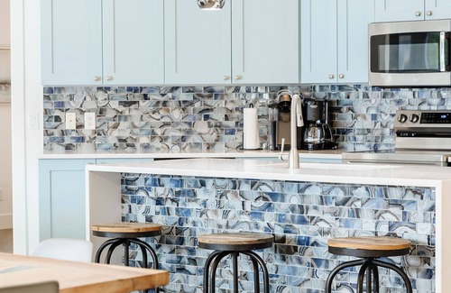 🍽 The heart of the home is a massive beachy-blue kitchen, fully stocked and thoughtfully designed for entertaining: