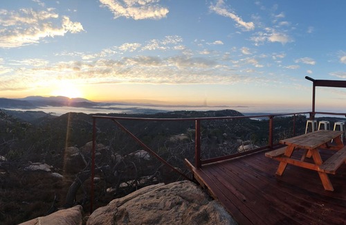 Perched at the eastern edge of Splitrock Valley with sweeping views of Mt. Palomar and Fallbrook’s rolling farmland, Peppertree Ridge offers a serene, off-grid glamping experience in a thoughtfully designed geodome.