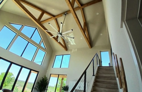 Located in Gordon, Palo Pinto County Texas, enjoy what this luxurious newly constructed on scenic bluff of the 500 acre Hilltop Ranch. 3-bedroom house has to offer. With 1 king bed and 2 queen beds, guests can relax in comfort. The property includes a working ranch setting with this home located on a pristine bluff with panoramic views of the surrounding mountainous area. Upper story large deck is a great place to watch the sunrise and fall over a cup of coffee or glass of wine. Panoramic glass doors and walls allow our quests to enjoy the view from most areas of the home. If your seeking a tranquil scenic and comforting refuge this is the place. Many features including guided hunting, 500 yard target range, fishing, etc. are all available with separate pricing upon request.