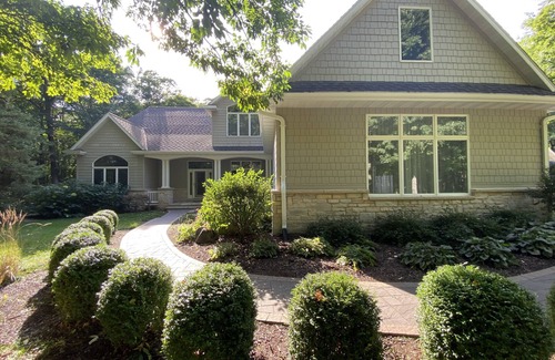 Relax with the whole family at this peaceful place to stay. Entire property to yourself. Refreshed & updated 4BR house on approximately 4 acres of wooded seclusion. Wonderful finished detail makes this incredible residence a true standout. Custom kitchen, 3 fireplaces, 1st floor master suite, + gorgeous bar downstairs. Pool table room with bonus queen sleeper-sofa. Large outdoor living space- ideal for entertaining. Features a covered sitting area w/ a wood burning fireplace & gourmet grill. Minutes from all Door Co activities!