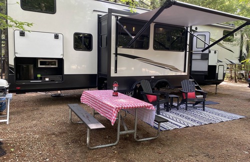 Looking for a get-away in Maine. Enjoy the comforts of home and the fun of camping in our 39" 5th wheel Montana RV. Equipped with a king size bed, kitchen, fireplace and more. Outside we have Adirondack chairs, Wood fire pit and picnic table along side with an outdoor kitchen. Enjoy the amenities of Hemlock Grove Campground located near the Kennebunk's or a campground of your choice. Please contact us for more information.