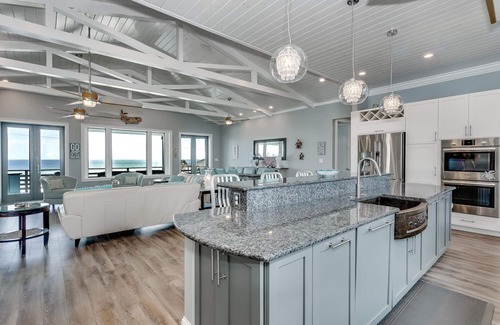 Due to the 11-inch concrete ICF walls, the home will be quiet and the Geothermal air conditioning will ensure the house stays cool/low humidity during the hot Summer months. Our Turtle Spa house faces the Gulf of Mexico with gorgeous views of the emerald green water and sugar white sands! A Roof Top Deck enables the best island views and sunsets! This beach house is built to have all the extras, including a Chef’s dream kitchen, plus a smaller Prep Kitchen on the sleeping level. Other extras include a Thermasol steam shower which is located in the Master Bath shower located on the top floor. We also have an elevator available if needed for a fee. This home also offers a Gas grill and XL Primo Smoker. For your enjoyment, the yard is beautifully landscaped and is located in a quiet residential area. Please message for monthly discounted rates. Monthy discounted rentals are not offered for the peak Summer months.