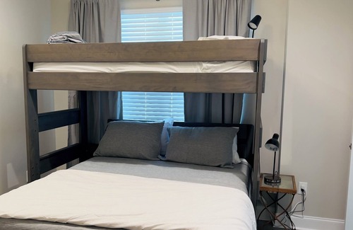 The sports complex at your doorstep, dining and shopping close by. This newly built townhome can sleep up to 7 people and is located one minute from the Youngsville Sport’s Complex. It's walkable to restaurants such as Agave Mexican, Seafood and Wings, McDonalds, Community Coffee, Twins Bakery and even Walgreens. Two bedrooms both with on-suite, one up, one down- fold out couch and half bath, washer/dryer to clean team clothes.