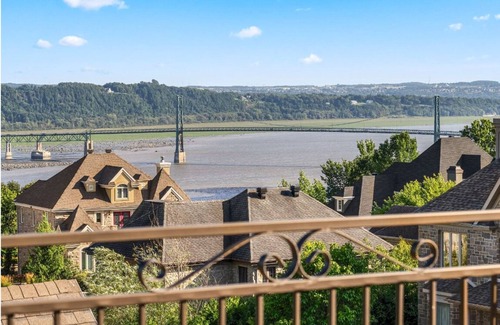 Discover this exceptional luxury home in Boischatel, offering breathtaking views of the St. Lawrence River and Old Quebec. With two private balconies, including one attached to the master suite, you can wake up every morning to a stunning panorama. This home perfectly blends comfort, elegance, and convenience, offering an unforgettable experience for travelers seeking to explore the best of the Québec region.