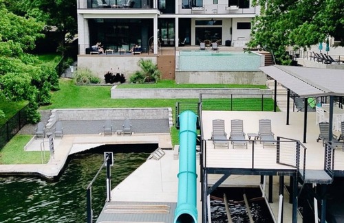 Kings Landing LBJ is a luxury lakefront vacation rental on Lake LBJ. Step inside and be instantly transported to vacation mode. Enjoy stunning lake views, relax in the infinity pool, unwind by the fire pit, or soak in the hot tub. The property is fully stocked with game rooms, paddle boards, kayaks, and a private dock with a water slide. With a 5,500 SF main house and a 1,000 SF detached casita, it comfortably sleeps up to 27 guests. King’s Landing is perfect for creating lifelong memories.
