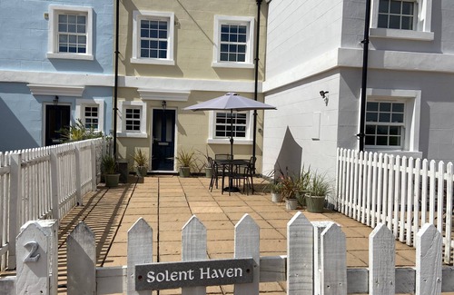 Solent Haven is a designer furnished two bedroom, two storey bijoux holiday rental apartment, which forms part of a Grade ll listed building and sleeps up to four people. The property benefits from an enclosed, expansive south facing sun terrace for alfresco dining with views of the Solent and the Isle of Wight. Allocated parking space accessed via security gates.