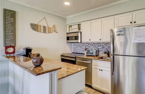 Inside you'll find a bright interior with lots of natural light, comfortable furniture to have great conversation on, and a private balcony to dine alfresco or sip your wine while watching the sunset. Prepare grand meals and on-the-go snacks in the full kitchen, complete with stainless steel appliances and plenty of cupboard room. Get restful night's sleep from the days activities on the soft and comfortable beds, and don't forget to wash off the sand and sunscreen at the end of the day in the luxurious walk-in shower.