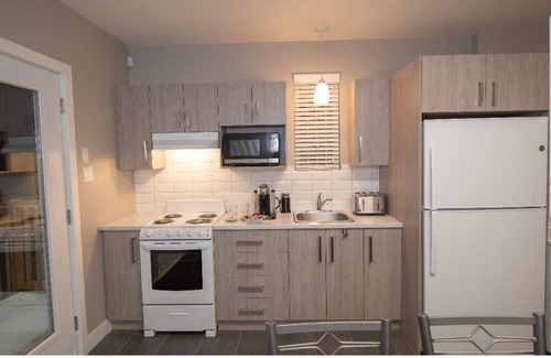 The KITCHEN is fully equipped with ultra-quiet, ELECTRIC OVEN & STOVE, & COFFEE MACHINE, MICROWAVE. And all other utensils to make your VACATION a one Of a kind! The dining room table can sit as much as 6 people.