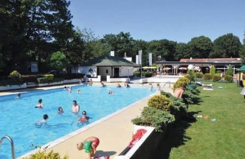 There is a 25m swimming pool and a small pool for toddlers, tennis courts and playgrounds on the parc.