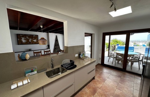 This is undoubtedly one of the most impressive Lanzarote villas. Located on the side of the Montana Roja volcano, the view from the sun terrace is truly stunning. Spectacular mountains lie to your left, Playa Blanca town and the sea directly in front, and Fuerteventura to your right - this is one view you can sit and admire for days! The large sun terrace is also completely private and the swimming pool is heated throughout the year. Other great features outside include the 6 seater hot tub, shaded pergola, large 'alfresco' style dining area and large brick barbecue. Inside the villa is equally impressive. The lounge has a TV, with internet TV system (incl all BBC/ITV/Sky Sports) . Wi-fi is also available for free. The new kitchen fitted in 2024 is fully equipped and the bedrooms are all large with air conditioning. All 3 double/ king size bedrooms have ensuite bathrooms with walk in showers and their is a third bathroom also with a shower. In all, a truly fantastic villa we feel sure you will want to keep coming back to.