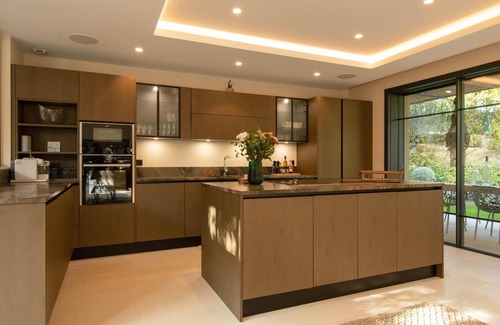 Enter your own holiday paradise through the electric gate with covered parking, and experience luxury in the living room with designer furniture, fireplace and TV. The adjacent kitchen with dining table is ideal for a communal breakfast. A stone staircase leads to the first floor with another 4 designer bedrooms and a balcony. The beautiful garden has a raised pool with wooden terrace, a pool house with outdoor kitchen and even a hot tub! Included 2 x weekly cleaning and 1x weekly linen change