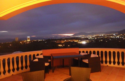 This very spacious luxury villa will comfortably accommodate 10 guests. This is a private, fully equipped home and has a large terrace featuring both dining and lounge areas with BBQ. This balcony has 180 degree open views over mountain, sea, Gibraltar and Africa on a clear day. Driveway parking for 6 cars. Downstairs is a pool table with fridge for cold drinks and a convenient pool changing room. There is a table-tennis table with bats and balls provided. Gardens and terraces around the house. Good size heated pool with sun loungers, garden chairs and side tables. Additionally, there is a lovely Gazebo with comfortable sofa and chairs. Lovely beaches within 5 min drive including Cabopino and Nikki beach by the Don Carlos hotel. This is a no smoking villa with plenty of outdoor areas for smokers.
